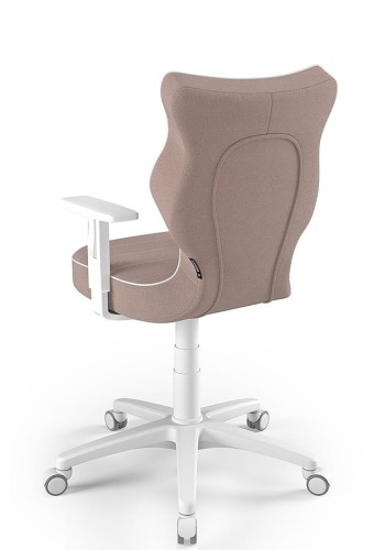 Čalúnená stolička Petit pre telesnú výšku od 146 do 176 cm. Stolička je vybavená bielym rámom a opierkami rúk s nastaviteľnou výškou. Jedná sa o vysoko kvalitný výrobok, ktorý bol navrhnutý a kompletne vyrobený v EÚ. Čalúnenie má ružovú farbu. Stolička je ergonomicky nadizajnovaná a podporuje zdravé sedenie. Operadlo je presne prispôsobené tvaru chrbtice. Vďaka tomu je chrbát menej unavený. Stolička núti zaujať zdravú polohu pri sedení, ktorá zároveň poskytuje maximálne pohodlie. Táto stolička je vynikajúcou voľbou pre spotrebiteľov, ktorí ocenia pohodlie a komfort pri dlhšom sedení, či už pri plnení povinností za písacím stolom alebo pri zábave na počítači. Stolička je vhodná ku stolom výšky 70-82 cm. Produkt je certifikovaný a jeho nosnosť je 110 kg.