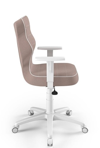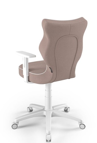 Čalúnená stolička Petit pre telesnú výšku od 159 do 188 cm. Stolička je vybavená bielym rámom a opierkami rúk s nastaviteľnou výškou. Jedná sa o vysoko kvalitný výrobok, ktorý bol navrhnutý a kompletne vyrobený v EÚ. Čalúnenie má ružovú farbu. Stolička je ergonomicky nadizajnovaná a podporuje zdravé sedenie. Operadlo je presne prispôsobené tvaru chrbtice. Vďaka tomu je chrbát menej unavený. Stolička núti zaujať zdravú polohu pri sedení, ktorá zároveň poskytuje maximálne pohodlie. Táto stolička je vynikajúcou voľbou pre spotrebiteľov, ktorí ocenia pohodlie a komfort pri dlhšom sedení, či už pri plnení povinností za písacím stolom alebo pri zábave na počítači. Stolička je vhodná ku stolom výšky 70-82 cm. Produkt je certifikovaný a jeho nosnosť je 110 kg.