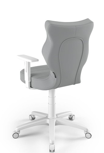 Čalúnená stolička Petit pre telesnú výšku od 159 do 188 cm. Stolička je vybavená bielym rámom a opierkami rúk s nastaviteľnou výškou. Jedná sa o vysoko kvalitný výrobok, ktorý bol navrhnutý a kompletne vyrobený v EÚ. Čalúnenie má šedú farbu. Stolička je ergonomicky nadizajnovaná a podporuje zdravé sedenie. Operadlo je presne prispôsobené tvaru chrbtice. Vďaka tomu je chrbát menej unavený. Stolička núti zaujať zdravú polohu pri sedení, ktorá zároveň poskytuje maximálne pohodlie. Táto stolička je vynikajúcou voľbou pre spotrebiteľov, ktorí ocenia pohodlie a komfort pri dlhšom sedení, či už pri plnení povinností za písacím stolom alebo pri zábave na počítači. Stolička je vhodná ku stolom výšky 70-82 cm. Produkt je certifikovaný a jeho nosnosť je 110 kg.