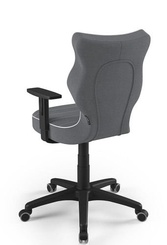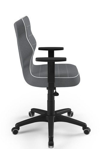 Čalúnená stolička Petit pre telesnú výšku od 159 do 188 cm. Stolička je vybavená čiernym rámom a opierkami rúk s nastaviteľnou výškou. Jedná sa o vysoko kvalitný výrobok, ktorý bol navrhnutý a kompletne vyrobený v EÚ. Čalúnenie má šedú farbu. Stolička je ergonomicky nadizajnovaná a podporuje zdravé sedenie. Operadlo je presne prispôsobené tvaru chrbtice. Vďaka tomu je chrbát menej unavený. Stolička núti zaujať zdravú polohu pri sedení, ktorá zároveň poskytuje maximálne pohodlie. Táto stolička je vynikajúcou voľbou pre spotrebiteľov, ktorí ocenia pohodlie a komfort pri dlhšom sedení, či už pri plnení povinností za písacím stolom alebo pri zábave na počítači. Stolička je vhodná ku stolom výšky 70-82 cm. Produkt je certifikovaný a jeho nosnosť je 110 kg.