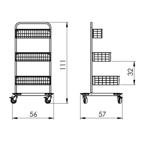 Stojan na kolieskach s drôtenými košíkmi. Detailný popis