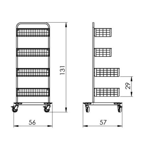 Stojan na kolieskach s drôtenými košíkmi. Detailný popis