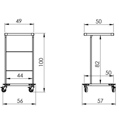 Pojazdný stojan s košíkmi z AISI304 nehrdzavejúcej ocele. Stojan je vybavený: