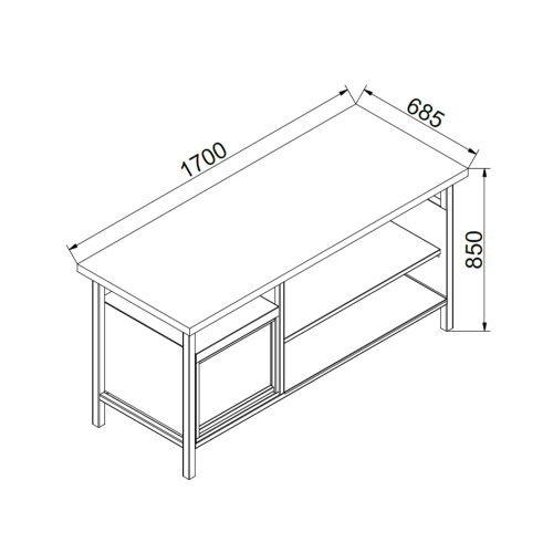 Pracovný stôl s kovovou konštrukciou a drevenou doskou. Konštrukcia je z uzatvorených profilov 40 x 40 mm. Doska hrúbky 40 mm je vyrobená z bukovej škárovky. Produkt je dostupný v dvoch farebných kombináciách konštrukcie, viď. fotky produktu. Výbava: 3 x centrálne uzamykateľný modul s 3 zásuvkami. Zásuvky sú na guľôčkových výsuvoch (100 % výsuv) a horné dve zásuvky majú predprípravu na deliace priečky.