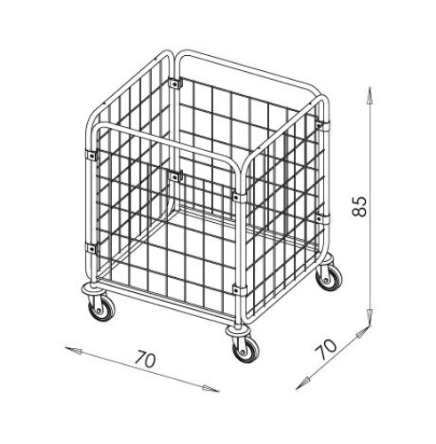 Kovová klietka na kolieskach s pozinkovanou povrchovou úpravou. Výplň podvozku je pozinkovaný plech. Kolesá: 4 x otočné, priemer 100 mm, vybavené plastovými nárazníkmi. Celková nosnosť výrobku je 250 kg. Vozík je možné vybaviť obalmi a vakmi.