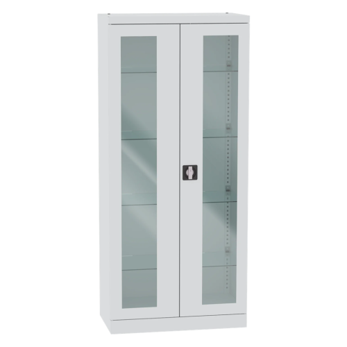 Kovová lieková skriňa šírky 800 mm. Skriňa so sklenenými dverami a policami je optimálnou voľbou pre lekárske ordinácie a iné zdravotnícke zariadenia. Obsah skrinky je chránený dvierkami vybaveným zámkom s dvoma kľúčmi v balení. Sklenené police s hrúbkou 4 mm sú nastaviteľné v po 25 mm (nosnosť 25 kg/polica), vďaka čomu majú skrinky všestranné využitie. Krídlové dvere sú vyplnené tvrdeným sklom s hrúbkou 4 mm. Nábytok je zváraný a nemusí sa skladať, čo mu dodáva pevnosť a stabilitu. Skrinky Sml sa vyznačujú nadčasovým dizajnom a zároveň zabezpečujú bezpečnosť uložených predmetov.