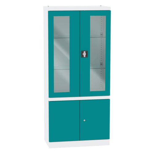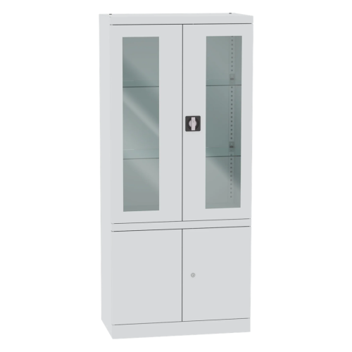 Kovová lieková skriňa šírky 800 mm. Skriňa so sklenenými dverami a policami je optimálnou voľbou pre lekárske ordinácie a iné zdravotnícke zariadenia. Obsah skrinky je chránený dvierkami vybaveným zámkom s dvoma kľúčmi v balení. Sklenené police s hrúbkou 4 mm sú nastaviteľné v po 25 mm (nosnosť 25 kg/polica), vďaka čomu majú skrinky všestranné využitie. Krídlové dvere sú vyplnené tvrdeným sklom s hrúbkou 4 mm. Nábytok je zváraný a nemusí sa skladať, čo mu dodáva pevnosť a stabilitu. Skrinky Sml sa vyznačujú nadčasovým dizajnom a zároveň zabezpečujú bezpečnosť uložených predmetov.