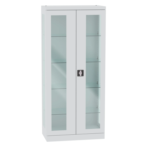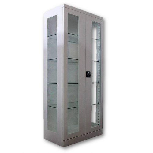 Kovová lieková skriňa šírky 800 mm. Skriňa so sklenenými dverami a policami je optimálnou voľbou pre lekárske ordinácie a iné zdravotnícke zariadenia. Obsah skrinky je chránený dvierkami vybaveným zámkom s dvoma kľúčmi v balení. Sklenené police s hrúbkou 4 mm sú nastaviteľné v po 25 mm (nosnosť 25 kg/polica), vďaka čomu majú skrinky všestranné využitie. Krídlové dvere sú vyplnené tvrdeným sklom s hrúbkou 4 mm. Nábytok je zváraný a nemusí sa skladať, čo mu dodáva pevnosť a stabilitu. Skrinky Sml sa vyznačujú nadčasovým dizajnom a zároveň zabezpečujú bezpečnosť uložených predmetov.
