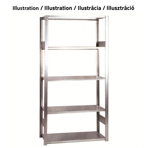 Regál so šírkou políc 1000 mm. Vyrobený z certifikovanej pozinkovanej ocele, ktorá zaručuje dlhú životnosť a pekný vzhľad. Konštrukcia regálu je stavebnicová a je možné ho zostaviť bez použitia spojovacieho materiálu. Regál je určený na skladovanie rôznych materiálov, je vhodný pre použitie v kancelárii, dielni, sklade atď. Navzdory jednoduchej montáži je regál pevný, rozoberateľný a znova zostaviteľný. Police sú prestaviteľné po 25 mm.