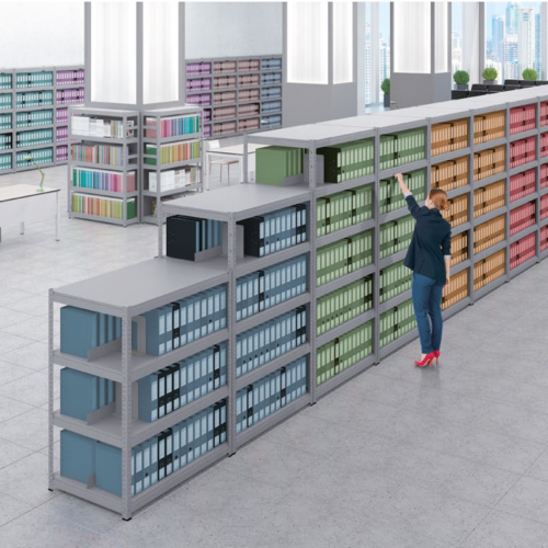 Kovový regál, ktorý je možné inštalovať bez použitia spojovacieho materiálu. Jednotlivé elementy sa do seba zasúvajú. Farba konštrukcie a políc je voliteľná. Police sú prestaviteľné po 30 mm. Regály sa dodávajú v demontovanom stave.
