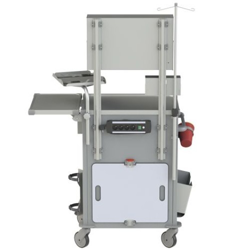 Konštrukcia vozíka môže byť oceľová, ošetrená šedou antimikrobiálnou farbou alebo v nehrdzavejúcom AISI304 prevedení. Vozík má antivibračnú výstuhu. Pracovná plocha vozíka z nehrdzavejúcej ocele AISI304 s 12 mm prelisom, ochrannými rohmi a nosnosťou 20 kg. Čelá zásuviek sú z kompaktného plastu (ABS), farba je voliteľná zo vzorkovníka. Zásuvky môžu byť klasické alebo určené na skladovanie MS košov. Zásuvky sú vybavené guličkovým plnovýsuvom, s doťahovaním a dotlmením. Nosnosť zásuviek je 20 kg. Zásuvky sú centrálne uzamykateľné. Produkt je vybavený: 5 x zásuvka veľkosti M. Vozík je vybavený aj oceľovým madlom, AISI304. Kolesá vozíka sú plastové, s plastovými nárazníkmi. Priemer kolies je 125 mm, z toho 2 s brzdou. Celková nosnosť výrobku je 150 kg.