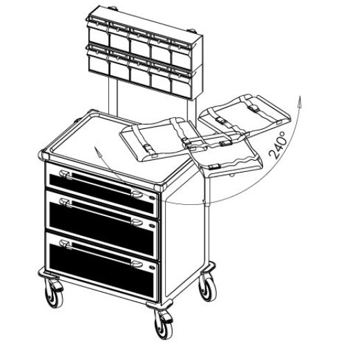 Vzorová zostava resuscitačného vozíka. Produkt je možné upraviť požiadavkám a potrebám zákazníka. Vybavenie vozíka na obrázku viď. popis nižšie.