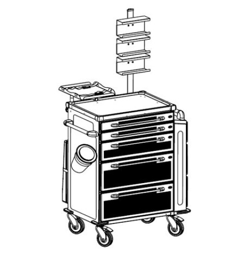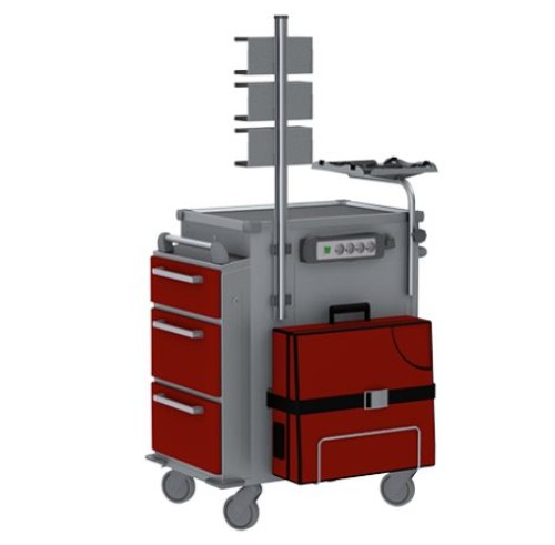 Vzorová zostava resuscitačného vozíka s držiakom na automasážny prístroj. Produkt je možné upraviť požiadavkám a potrebám zákazníka. Vybavenie vozíka na obrázku viď. popis nižšie.