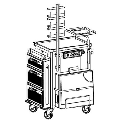 Konštrukcia vozíka môže byť oceľová, ošetrená šedou antimikrobiálnou farbou alebo v nehrdzavejúcom AISI304 prevedení. Vozík má antivibračnú výstuhu. Pracovná plocha vozíka z nehrdzavejúcej ocele AISI304 s 12 mm prelisom, ochrannými rohmi a nosnosťou 20 kg. Čelá zásuviek sú z kompaktného plastu (ABS), farba je voliteľná zo vzorkovníka. Zásuvky sú vybavené guličkovým plnovýsuvom, s doťahovaním a dotlmením. Nosnosť zásuviek je 20 kg. Zásuvky sú centrálne uzamykateľné. Vozík je vybavený aj oceľovými madlami, AISI304. Kolesá vozíka sú plastové, s plastovými nárazníkmi. Priemer kolies je 125 mm, z toho 2 s brzdou. Celková nosnosť výrobku je 150 kg.