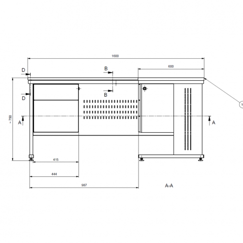 Rohový kancelársky stôl s podvesnými kontajnermi. Každý kontajner má 3 nízke zásuvky. Zostava sa skladá z kancelárskeho stola a rozšírenia ku kancelárskemu stolu. Rozšírenie je možné pripojiť na ľavú aj pravú stranu, stôl je teda možné umiestniť do pravého aj ľavého rohu.