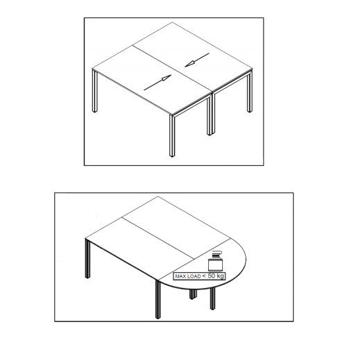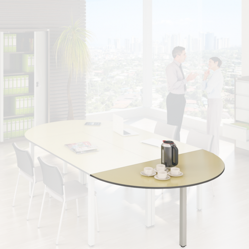 Možnosť rozšíriť kancelársky stôl o dosku v tvare polkruhu s opornou nohou. Výška 745 až 770 mm.