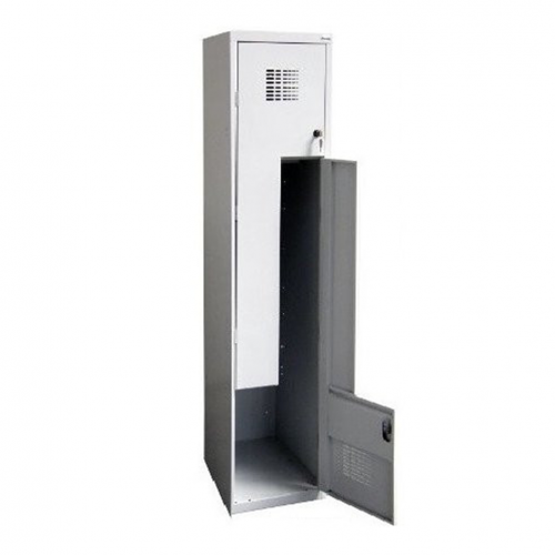 Prémiový kovový šatník s dvermi tvaru Z šírky 400 mm. Vnútorné vybavenie zahŕňa tyč s dvoma háčikmi na zavesenie oblečenia a menovku.