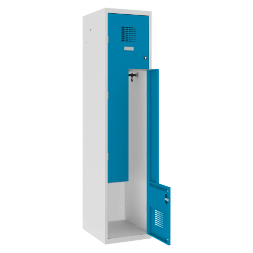 Kovová šatňová skriňa s dverami tvaru Z. Detailný popis