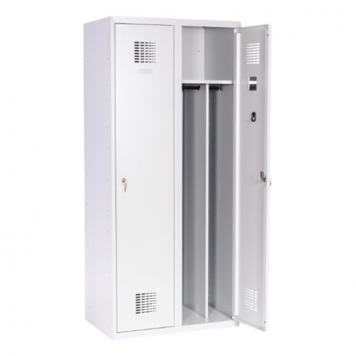 Prémiový kovový šatník šírky 800 mm. Skriňa je uzamykateľná a dodáva sa s 2 kľúčmi pre každé dvere. Vnútorné vybavenie zahŕňa policu v hornej časti oddelenia, tyč s dvoma háčikmi na zavesenie oblečenia, samolepiace zrkadlo, menovku a háčik. Vnútorný priestor je delený na čisté a pracovné oblečenie.