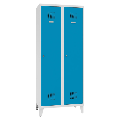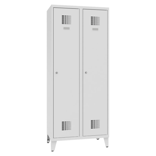 Štandardný kovový šatník šírky 800 mm s nožičkami. Skriňa je uzamykateľná a dodáva sa s 2 kľúčmi pre každé dvere. Vnútorné vybavenie zahŕňa policu v hornej časti oddelenia, tyč s dvoma háčikmi na zavesenie oblečenia, samolepiace zrkadlo, menovku a háčik. Vnútorný priestor je delený na čisté a pracovné oblečenie.