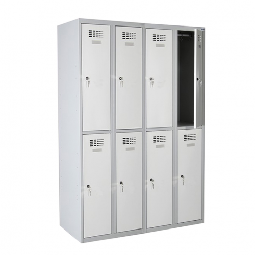 Prémiový kovový šatník šírky 1200 mm s krátkymi dverami. Skriňa je uzamykateľná a dodáva sa s 2 kľúčmi pre každé dvere. Vnútorné vybavenie zahŕňa tyč s dvoma háčikmi na zavesenie oblečenia a samolepiaci držiak na menovku.
