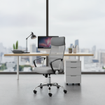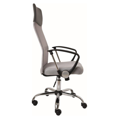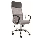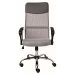 Svetlošedé kancelárske kreslo s čalúneným sedákom a opierkou so sieťoviny.