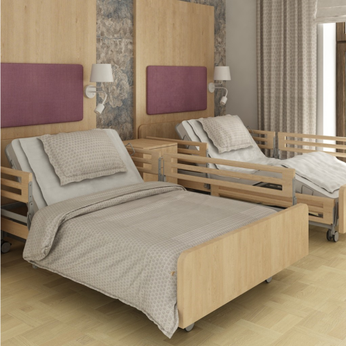 Elektricky nastaviteľná posteľ s reguláciu výšky a možnosťou polohovania. Oproti štandardnému prevedeniu je prispôsobená na použitie širšieho matraca. Toto riešenie je ideálne pre pacientov, ktorí očakávajú väčšie pohodlie.
