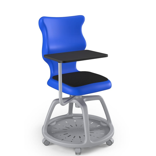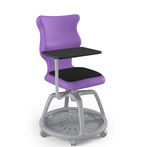 Stolička je kombináciou ergonomického plastového sedadla s mäkkou čalúnenou podložkou a funkčnou sivou základňou, ktorá umožňuje maximálne využitie priestoru pod stoličkou. Stolička je vybavená sklopným plastovým stolíkom. Produkt obsahuje kolieska, ktoré umožňujú pohyb stoličky po tvrdých povrchoch. Tento model je dostupný v 1 veľkosti a je navrhnutý pre udržanie správnej polohy sedenia. Široká farebná paleta umožňuje vybrať stoličky pre akýkoľvek typ vzdelávacieho interiéru. Produkt navrhnutý a vyrobený v EÚ. Stoličky sú certifikované na použitie v školách. Nosnosť výrobku je 110 kg. Pri dopytoch a objednávkach uvádzajte farbu sedáku do poznámky.
