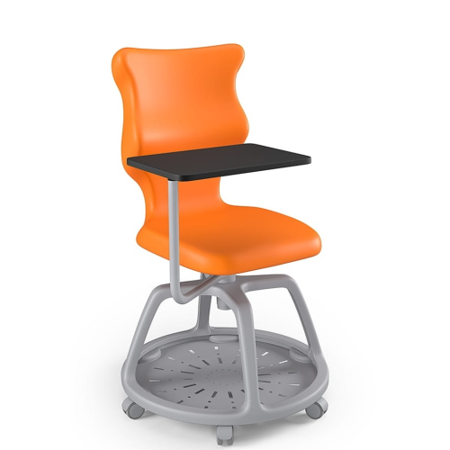 Stolička je kombináciou ergonomického plastového sedadla s funkčnou sivou základňou, ktorá umožňuje maximálne využitie priestoru pod stoličkou. Stolička je vybavená sklopným plastovým stolíkom. Produkt obsahuje kolieska, ktoré umožňujú pohyb stoličky po tvrdých povrchoch. Tento model je dostupný v 1 veľkosti a je navrhnutý pre udržanie správnej polohy sedenia. Široká farebná paleta umožňuje vybrať stoličky pre akýkoľvek typ vzdelávacieho interiéru. Produkt navrhnutý a vyrobený v EÚ. Stoličky sú certifikované na použitie v školách. Nosnosť výrobku je 110 kg. Pri dopytoch a objednávkach uvádzajte farbu sedáku do poznámky.