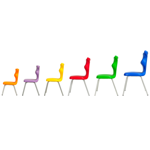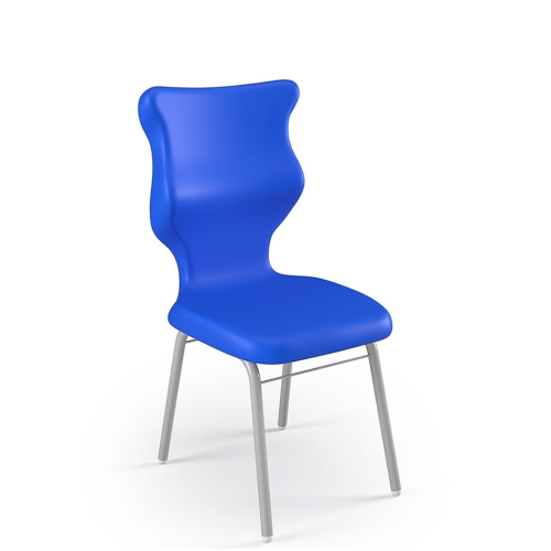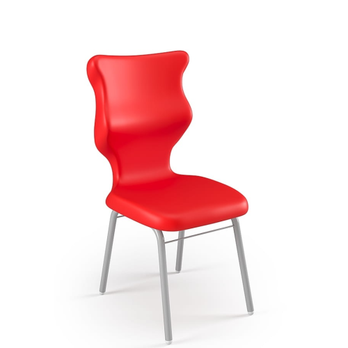 Kvalitná školská stolička s ergonomickým plastovým sedadlom a rámom v šedej farbe (alebo biela za príplatok) zakončeným protišmykovými zátkami. Opierka zabezpečuje oporu v troch bodoch: hrudná, bedrová a krížová oblasť. Sedadlo má na zadnej strane madlo na prenášanie stoličky. Stolička sa dodáva v 6 veľkostiach, aby sa optimálne prispôsobila výške užívateľa a aby sa počas používania zachovala správna poloha sedenia. Široká paleta farieb umožňuje stoličky zladiť s akýmkoľvek typom interiéru. Výrobok je navrhnutý a vyrobený v EÚ. Stoličky sú certifikované na použitie v školách. Nosnosť výrobku je 110 kg. Pri dopytoch a objednávkach uvádzajte farbu sedáku do poznámky.
