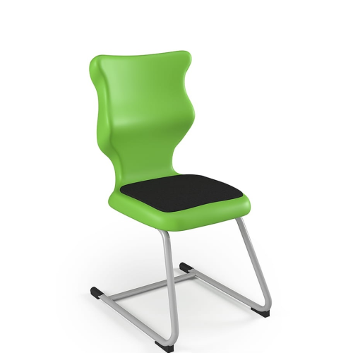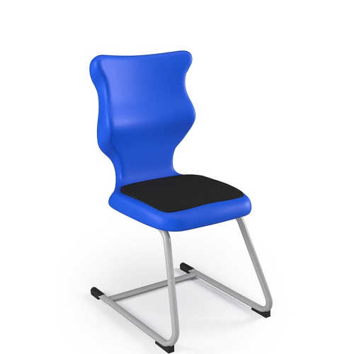 Kvalitná školská stolička s ergonomickým plastovým sedadlom s mäkkou čalúnenou podložkou a rámom v šedej farbe zakončeným protišmykovými zátkami. Opierka zabezpečuje oporu v troch bodoch: hrudná, bedrová a krížová oblasť. Sedadlo má na zadnej strane madlo na prenášanie stoličky. Stolička sa dodáva v 4 veľkostiach, aby sa optimálne prispôsobila výške užívateľa a aby sa počas používania zachovala správna poloha sedenia. Široká paleta farieb umožňuje stoličky zladiť s akýmkoľvek typom interiéru. Výrobok je navrhnutý a vyrobený v EÚ. Stoličky sú certifikované na použitie v školách. Nosnosť výrobku je 110 kg. Pri dopytoch a objednávkach uvádzajte farbu sedáku do poznámky.