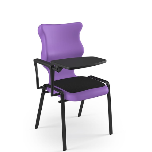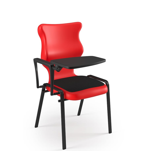 Stolička je kombináciou ergonomického plastového sedadla s mäkkou čalúnenou podložkou a čiernym rámom. Rám tvorí oválny profil 30 x 15x 1,5 cm vyrobený z ocele. Stolička má sklopnú pracovnú plochu, ktorá uľahčuje pohodlnú prácu a učenie sa počas prednášok či školení. Opierka zabezpečuje oporu v troch bodoch: hrudná, bedrová a krížová oblasť. Študentská stolička je dostupná vo veľkosti 6 (pre telesnú výšku 159 cm - 188 cm). Široká farebná paleta vám umožní vybrať si stoličku pre akýkoľvek typ interiéru. Produkt navrhnutý a vyrobený v EÚ. Stoličky sú certifikované na použitie v školách. Nosnosť výrobku je 110 kg. Pri dopytoch a objednávkach uvádzajte farbu sedáku do poznámky.