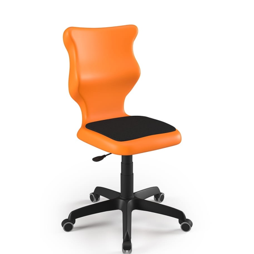 Stolička je kombináciou ergonomického plastového sedadla s mäkkou čalúnenou podložkou a päťcípou základňou v čiernej farbe (za príplatok je možná biela alebo šedá konštrukcia), ktorá umožňuje otáčanie stoličky okolo vlastnej osi. Súprava obsahuje mäkké kolieska umožňujúce pohyb po tvrdých povrchoch aj kobercoch. Tento model je dostupný v 3 veľkostiach prispôsobených výške užívateľa pre udržanie správnej polohy sedenia. Široká farebná paleta umožňuje vybrať stoličky pre akýkoľvek typ vzdelávacieho interiéru. Produkt navrhnutý a vyrobený v EÚ. Stoličky sú certifikované na použitie v školách. Nosnosť výrobku je 110 kg. Pri dopytoch a objednávkach uvádzajte farbu sedáku do poznámky.