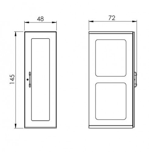 Kovová skriňa na ISO plastové koše. Farba konštrukcie je šedá, RAL 7042. Farba dverí je voliteľná viď. obrázky produktu. Povrchová úprava skrine je antimikrobiálna. Dvere sú s možnosťou pravého aj ľavého otvárania a sú prachotesné. Výplň dverí je z plexiskla.