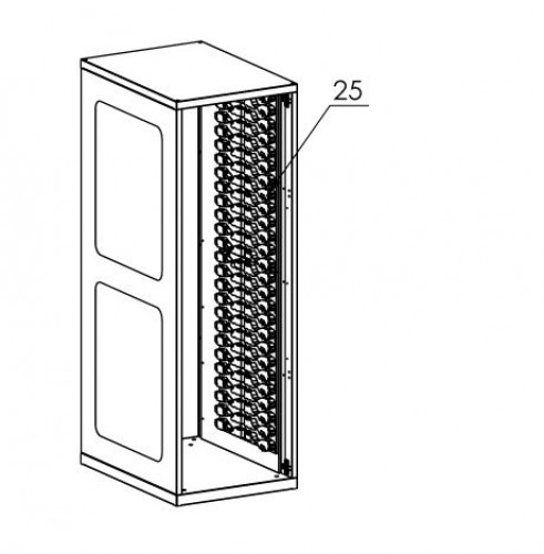 Skriňa má 25 pozícií pre plastové koše, ktoré sa vysúvajú horizontálne. Je možné objednať koše veľkosti:
