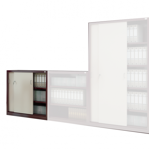 Skriňa s posuvnými dverami šírky 1200 mm. Pri použití týchto skríň nie je nutné disponovať priestorom pre otváranie dverí tak, ako je to napríklad pri skriniach s krídlovými dverami. Posuvné kovové dvere udržia vaše dokumenty v bezpečí. Spoľahlivý mechanizmus posuvu dverí je uzamykateľný cylindrickým zámkom. Police sú nastaviteľné po 25 mm po celej výške skrine.