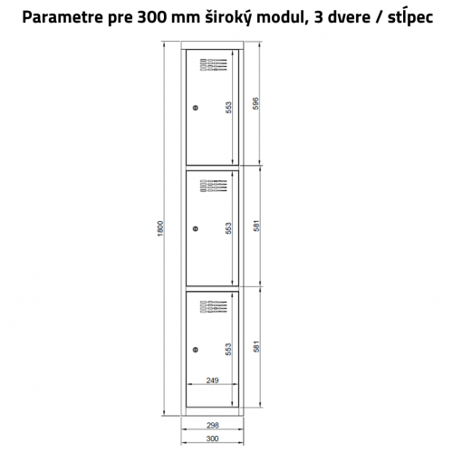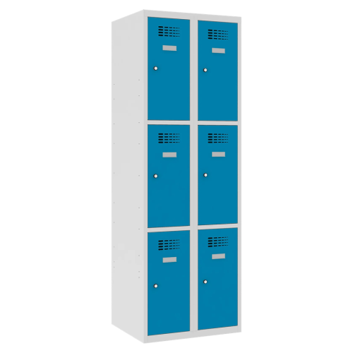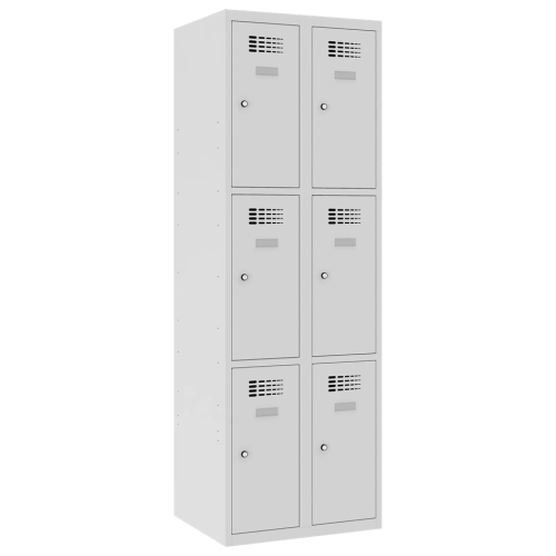 Kovová skriňa šírky 600 mm s uzamykateľnými priehradkami a 2 kľúčmi pre každé dvere. Všetky dvere majú vetrák a samolepiacu menovku. Skriňa je vhodná na úschovu vecí. Skriňa je zváraná, nie je nutná jej montáž, čo jej dodáva pevnosť a stabilitu.