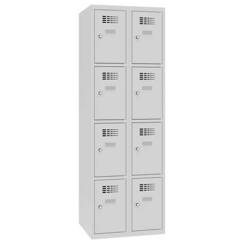 Kovová skriňa šírky 600 mm s uzamykateľnými priehradkami a 2 kľúčmi pre každé dvere. Všetky dvere majú vetrák a samolepiacu menovku. Skriňa je vhodná na úschovu vecí. Skriňa je zváraná, nie je nutná jej montáž, čo jej dodáva pevnosť a stabilitu.