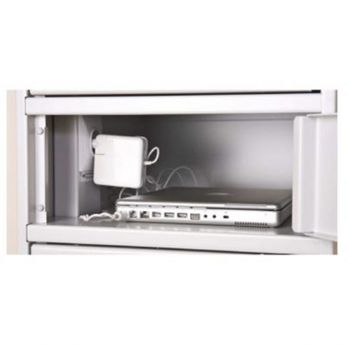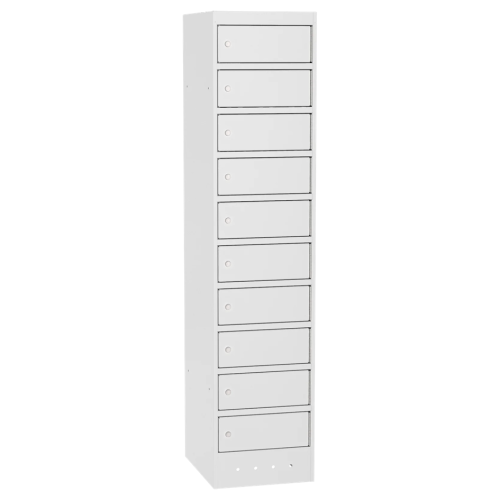 Kovová skriňa na úschovu a nabíjanie 10 elektrických zariadení. Každé oddelenie je uzamykateľné a dodáva sa s dvoma kľúčmi. V každom oddelení sa nachádza zásuvka 230 V. Pre pohodlné pripojenie skrine do siete sa dodáva s 3 m káblom. Maximálna veľkosť uskladneného zariadenia je 90 x 340 x 470 mm (17 palcov).