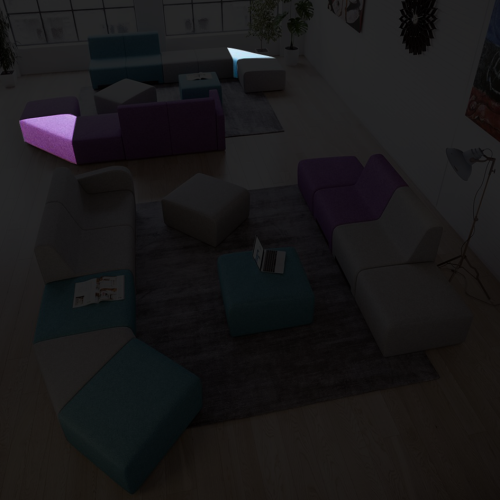 Celočalúnené modulárne sedenie. Z jednotlivých prvkov Rubico je možné vyskladať zostavy nábytku na sedenie, podľa individuálnych požiadaviek. Nosná konštrukcia je drevená, obalená polyuretánovou výplňou hrúbky 45 mm. Výrobok má nastaviteľné koncovky nôh od 0 - 10 mm, pre vyrovnanie nerovností. Nosnosť výrobku je 120 kg. Výška sedenia je 400 mm.