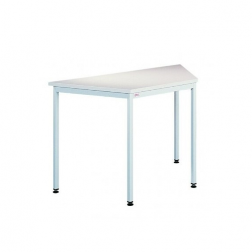 Kovový univerzálny stôl s melamínovou doskou stola v tvare lichobežníka. Je možné ho využiť v kanceláriách, jedálňach a pod. Dodávaný v demontovanom stave, možnosť montáže na vyžiadanie.