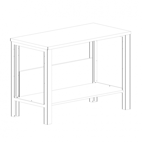 Kovový dielenský stôl šírky 1200 mm. Dodávaný v demontovanom stave. Doska stola je tvrdená drevovláknitá doska.