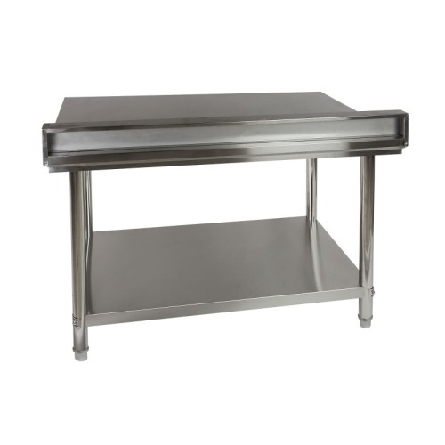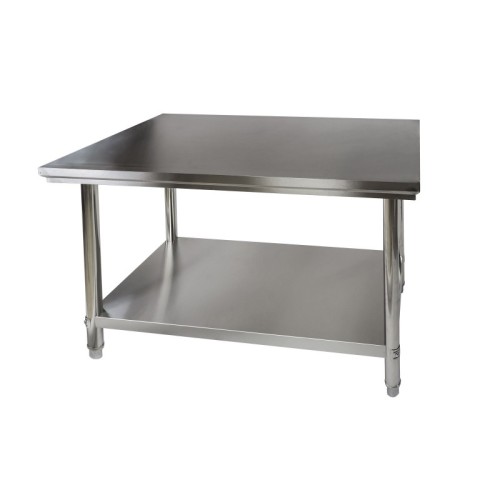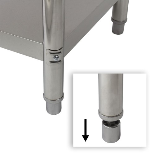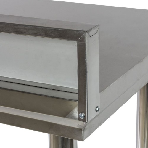 Kovový stôl vyrobený z nehrdzavejúcej ocele AISI 201. Pracovné stoly majú 100 mm vysokú hranu na zadnej strane pracovnej plochy, ktorá je odnímateľná. Stôl je vyrobený z ocele hrúbky 0,8 mm. Nosnosť pracovnej plochy a police je 120 kg, pri rovnomernej záťaži. Výška pracovnej plochy stola je 86,0 - 87,5 mm a výška police od podlahy je 200 mm. Koncovky nôh stola majú nastaviteľnú výšku pre vyrovnanie nerovností podlahy, raster 15 mm. Tovar sa dodáva v demonte a je zvyčajne k rýchlemu dodaniu.