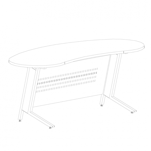 Dizajnový stôl s kovovou konštrukciou a melamínovou doskou stola, ktorá je zaoblená. Stôl má aj krycí diel pod doskou stola a nastaviteľné koncovky na nožičkách pre vyrovnanie nerovností.