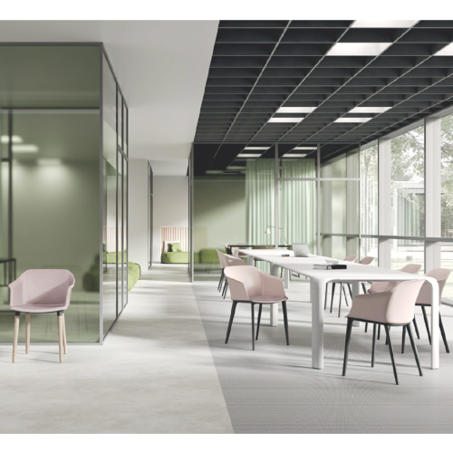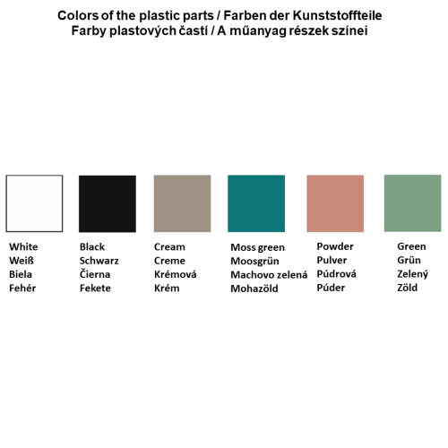 Stolička je vyrobená z plastu, sedák aj opierky sú čalúnené. Farba plastových dielov a čalúnenia je voliteľná viď. obrázky produktu. Výška x šírka x hĺbka sedadla: 490 x 450 x 550 mm.