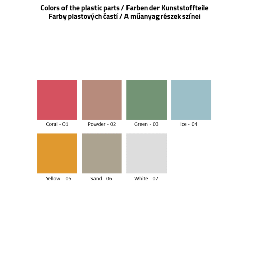 Ľahká plastová stolička, ktorá je vhodná do interiéru aj exteriéru. Stolička je stabilná, vyznačuje sa dlhou životnosťou a jednoduchou údržbou. Stoličky sú stohovateľné po 5 ks. Nosnosť stoličky je 120 kg. Výška sedáku od podlahy je 450 mm. Dostupné sú rôzne farebné odtiene, viď. obrázky produktu.
