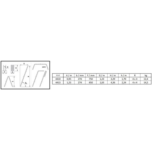 Štvordielny kĺbový rebrík 44xx - typy 4x3 a 4x4