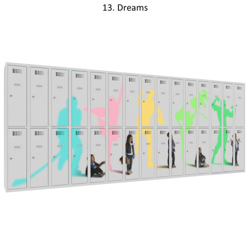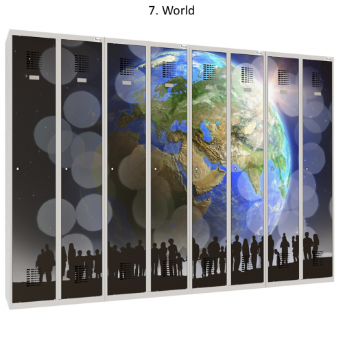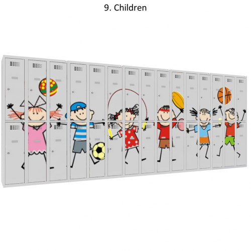 Kovový šatník s potlačou šírky 1200 mm. Potlač je rezistentná voči UVA a UVB žiareniu a vyznačuje sa zvýšenou odolnosťou proti mechanickému poškodeniu, napr. poškriabaniu. Nami dodávaná špeciálna UV potlač je neporovnateľne odolnejšia ako fóliový polep a štyrikrát odolnejšia ako štandardná potlač. Farebná úprava povrchu je trvácna a vyznačuje sa veľmi živými farbami. Šatňové skrine s potlačou na dverách sú vhodné pre školy a organizácie, ktoré chcú neobyčajným spôsob zdieľať svoje posolstvo alebo len jednoducho oživiť svoje priestory, prípadne upútať jedinečným firemným vizuálom.