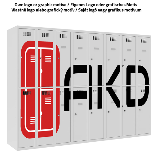 Za základnú cenu je možné dodať štandardné motívy z našej ponuky, ktoré nájdete v obrázkoch produktu. Taktiež je možné vyrobiť úplne originálnu potlač na základe vami dodaných podkladov alebo nájdeme riešenie na základe vašich požiadaviek. Tlač je možná na takmer akýkoľvek typ kovovej skrine z našej ponuky. Táto možnosť je za príplatok a radi pripravíme ponuku šitú na mieru podľa vašich nárokov.
