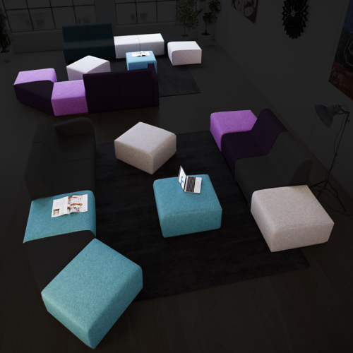 Celočalúnené modulárne sedenie. Z jednotlivých prvkov Rubico je možné vyskladať zostavy nábytku na sedenie, podľa individuálnych požiadaviek. Nosná konštrukcia je drevená, obalená polyuretánovou výplňou hrúbky 45 mm. Výrobok má nastaviteľné koncovky nôh od 0 - 10 mm, pre vyrovnanie nerovností. Nosnosť výrobku je 120 kg. Výška sedenia je 400 mm.